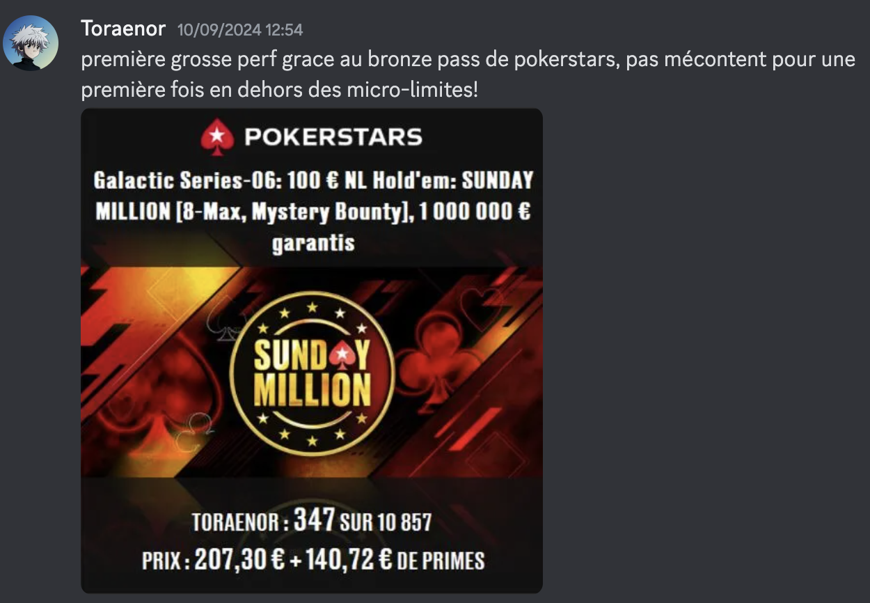 “Super site, très beau design et rapide et les cours de Yoh en MTT c'est de l'or. La formation couvre tous les aspects du jeu et aide aussi à structurer son mindset.”