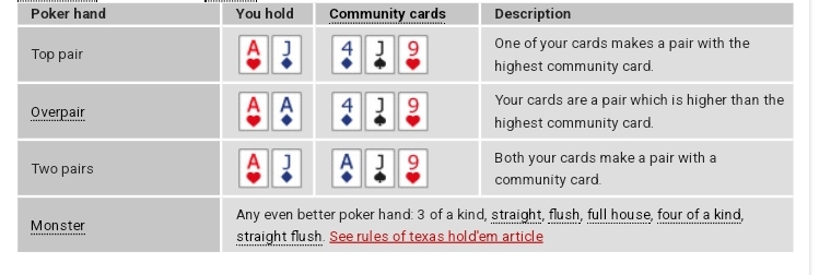 Les mains de poker de la catégorie "Top paire ou mieux".