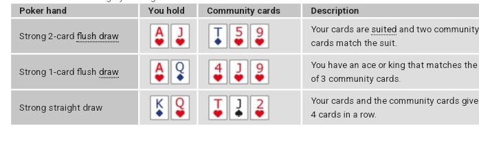 Mains de poker de la catégorie "Tirage fort".
