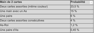 Les probabilités des mains de départ :