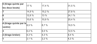 Les probabilités des tirages :